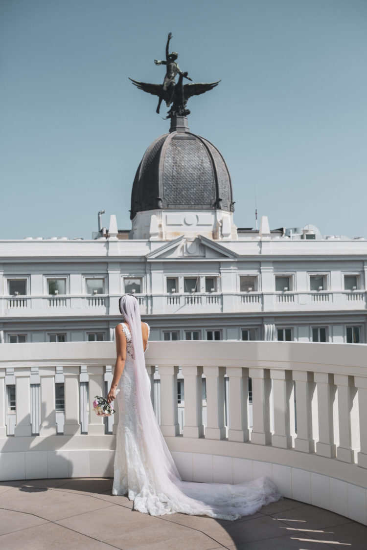 El homenaje al color rosa no es casualidad, por un lado el eau de parfum tan icónico de la linea For Her de Narciso Rodriguez es de color rosa y por otro lado, esta temporada el rosa y el malva se han convertido en los colores de moda para las invitadas. Algunos han llegado a bautizar al lila como el nuevo “rosa millenial” y ya sabéis que ellas viralizan las redes con sus looks y el resto los adaptamos a nuestro estilo. Es muy importante darle el toque personal a aquello que vemos en las redes, blogs y revistas para no parecer una “invitada clónica y sin personalidad”. Para dar vida a esta invitada tan de moda, contamos con Esif Fotografía que supo captar la esencia de la invitada más femenina. Para crear el look elegimos una blusa y falda de Dnook , el año pasado publicamos un look parecido con la falda en verde y os alucinó, os dejamos aquí el link. El tocado asimétrico y tipo diadema fue un diseño de Launike que creó en exclusiva para este shooting .