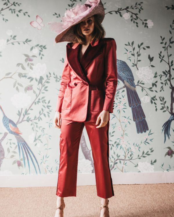 Invitadas con traje de chaqueta y tocado