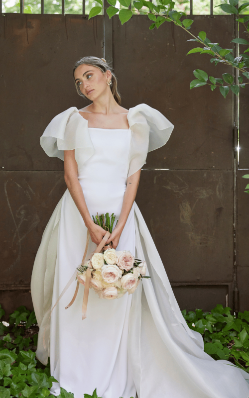 Conozco a Inés desde hace muchos años y llevamos mucho tiempo trabajando juntas. Su estilo ha ido evolucionando para dar lugar a una novia aún más femenina que en sus inicios pero manteniendo su esencia vintage. Sabía que para su boda diseñaría un vestido muy especial y no me equivoqué. En realidad llevó dos vestidos, el primero que puede formar parte de la tendencia «new medieval» y el segundo con guiños a los años veinte pero con su sello de identidad.
