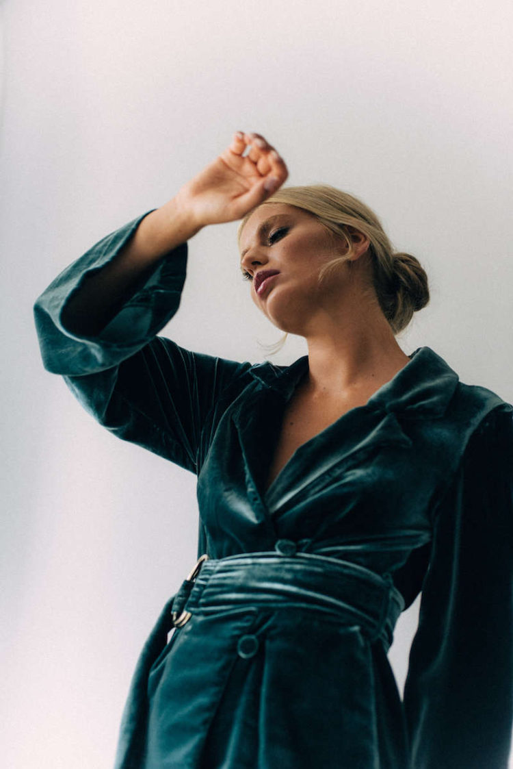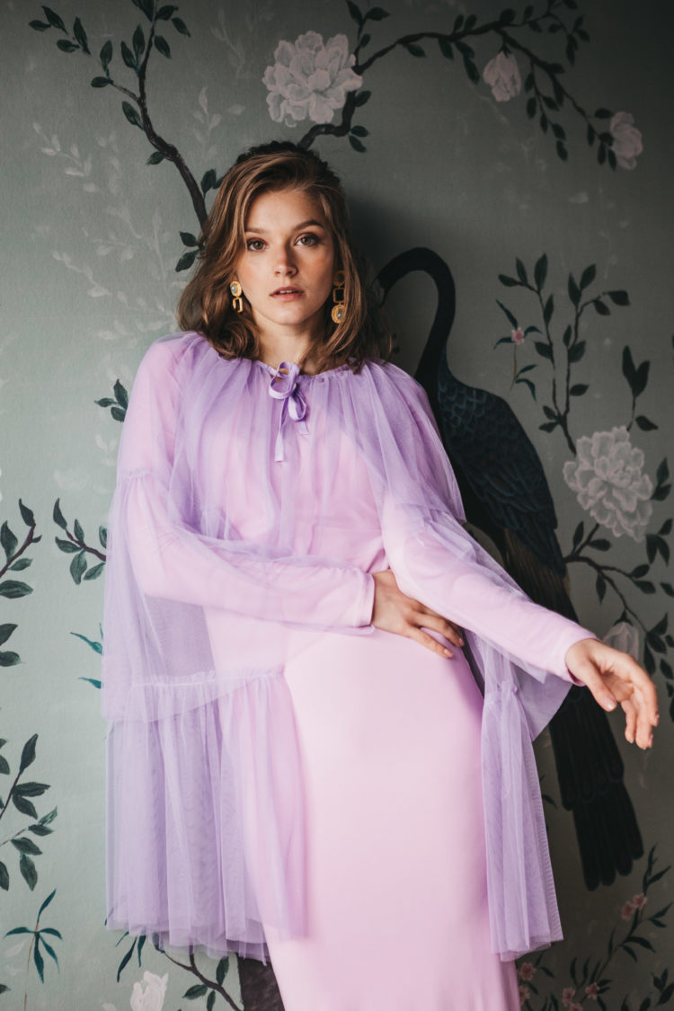 No todo en la danza son tutús, maquillajes y prendas brillantes. El balletcore es consciente de ello y también abarca las prendas cómodas que se utilizan durante los ensayos. Teniendo en cuenta esto, el tercer conjunto consiste en un total look de Mango en tono malva, con escote pico y cinturón, como las camisetas de ensayo, así como pantalones palazzo, muy cómodos; pendientes de Margarita de Zara y unas sandalias de pluma verde de Mango (como guiño a los cisnes) que serán perfectas para una invitada a una boda en primavera.