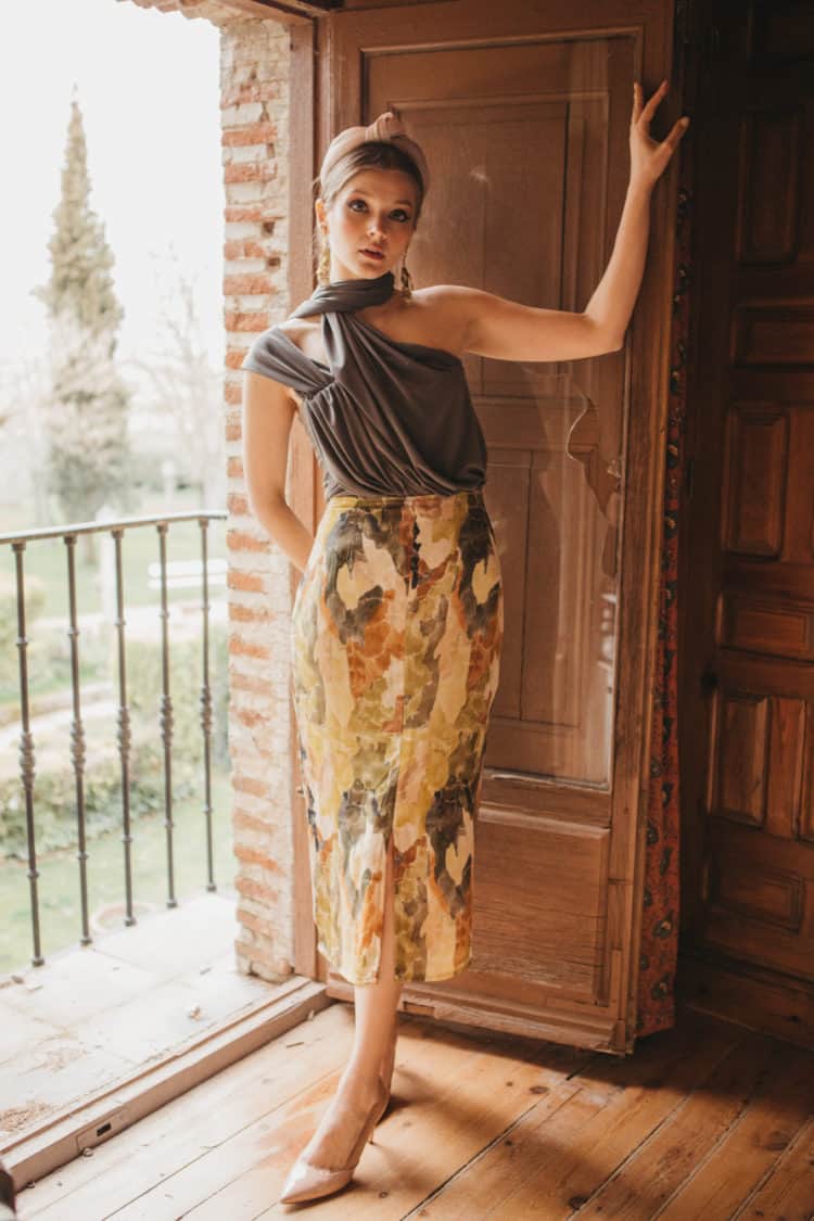 Top gris y falda estampada Anaika
