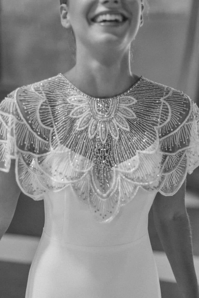 Han sido el auténtico boom en las invitadas y las novias cada vez las «desean más». Este modelo con cuello-joya es francamente especial para una novia que quiere un look sofisticado.